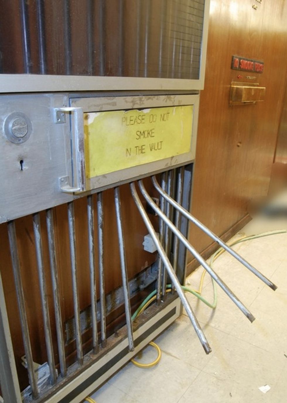 The crusty crooks allegedly disabled an elevator on the second floor, according to the Guardian, then shimmied down the shaft into the basement where the vault is located. Then they forced open doors —