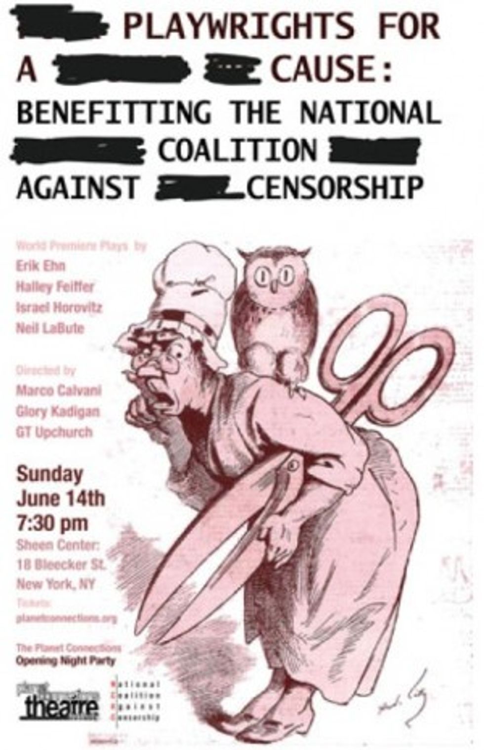 “The management of The Sheen Center actually suggested that we alter the title of Neil LaBute’s play, and alter the content of some of our panelists' speeches,” Glory Kadigan, artistic curator of Playwrights for a Cause, told Playbill. “Which we find completely out of line with the anti-censorship mission of the benefit.”