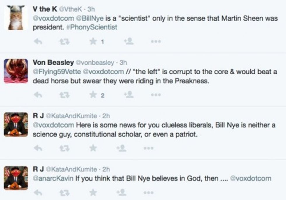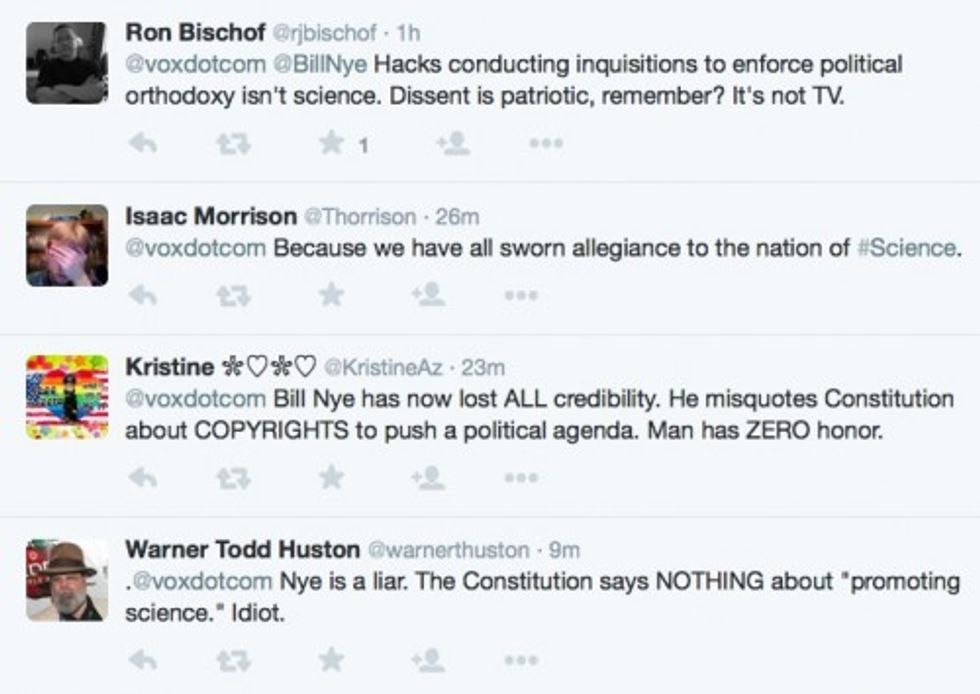 Some folks responded to the Vox tweet about the Nye interview and weren't terribly lenient about the Science Guy's faux pas: