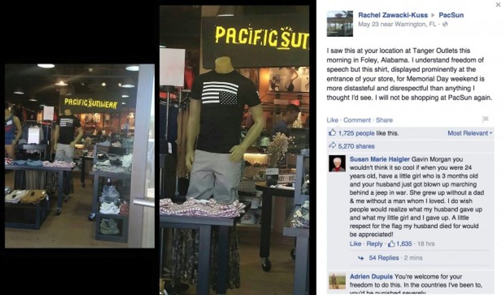 “Screw you PACSUN,” one Facebook user wrote in reply to the company’s “buy one, get one 50% off” Memorial Day promotion post. He signed his comment, “veteran.”