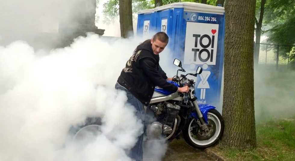 The panicked individual immediately abandoned the motorcycle and bystanders dumped a few glasses of water on it.