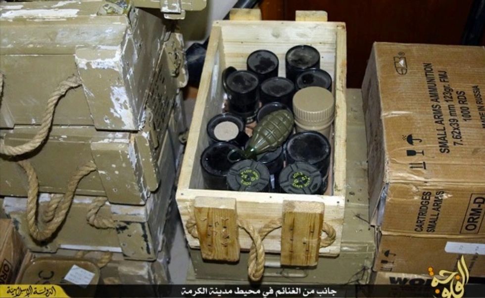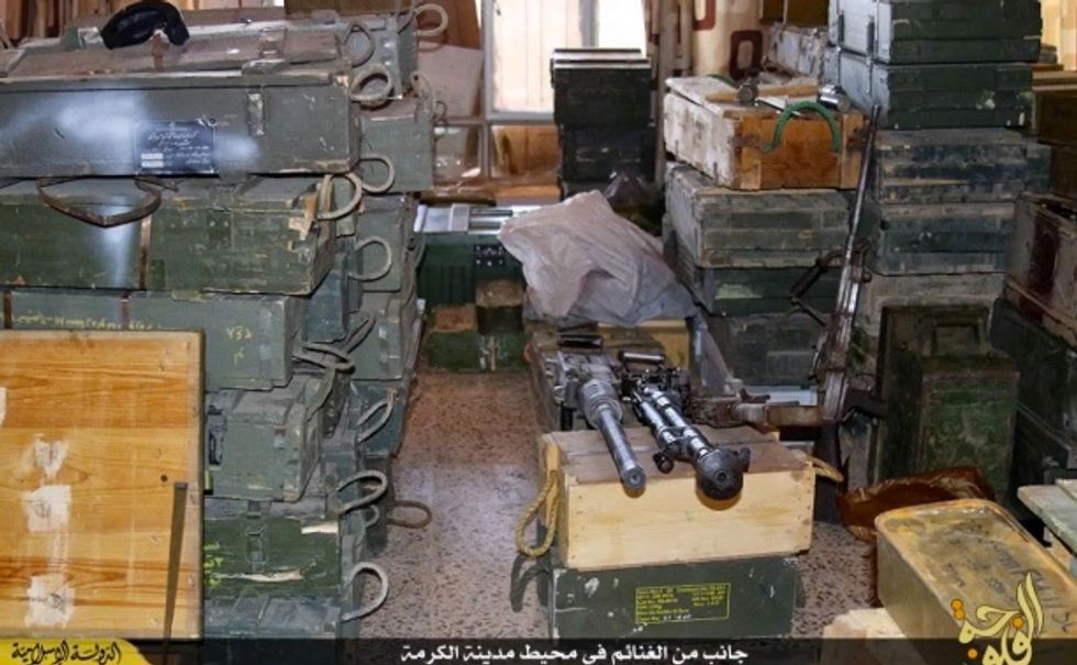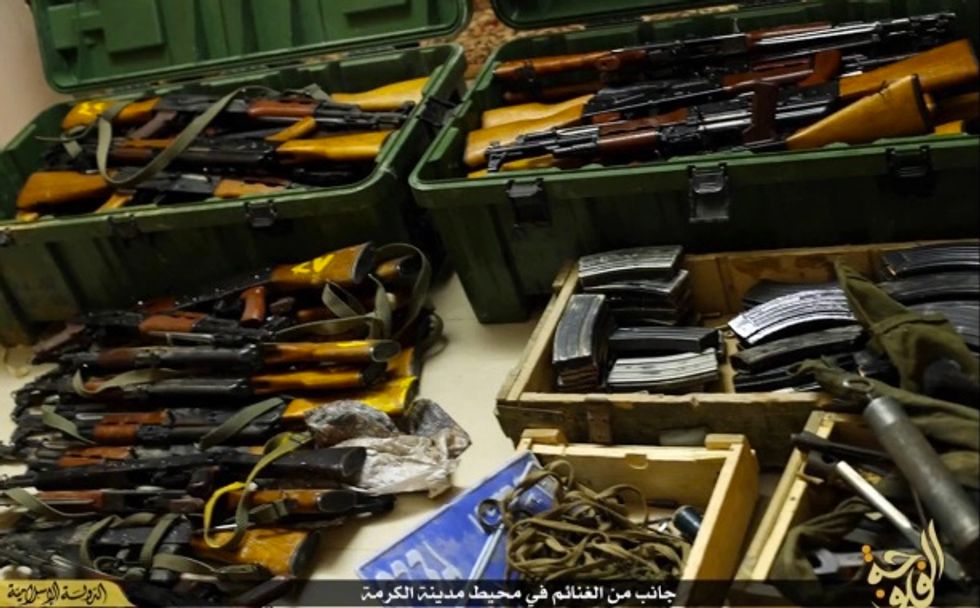 The Islamic State group showed off the vast amount of weapons it seized in Fallujah. (Image source: YouTube)