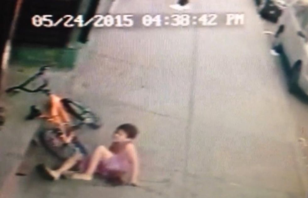 A 7-year-old boy pedaled along the sidewalk in a Boston neighborhood over the weekend past a barber shop on his way to buy a bottle of water. Surveillance video shows him happily cruising in one view, but when it cuts to another, the boy is seen off the seat of his bike on the sidewalk, rolling onto his side.
