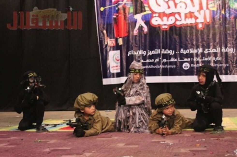 End of year shows staged at several kindergartens in the West Bank and Gaza featured the small children dressed as terrorists, complete with military fatigues and waving toy machine guns as props.
