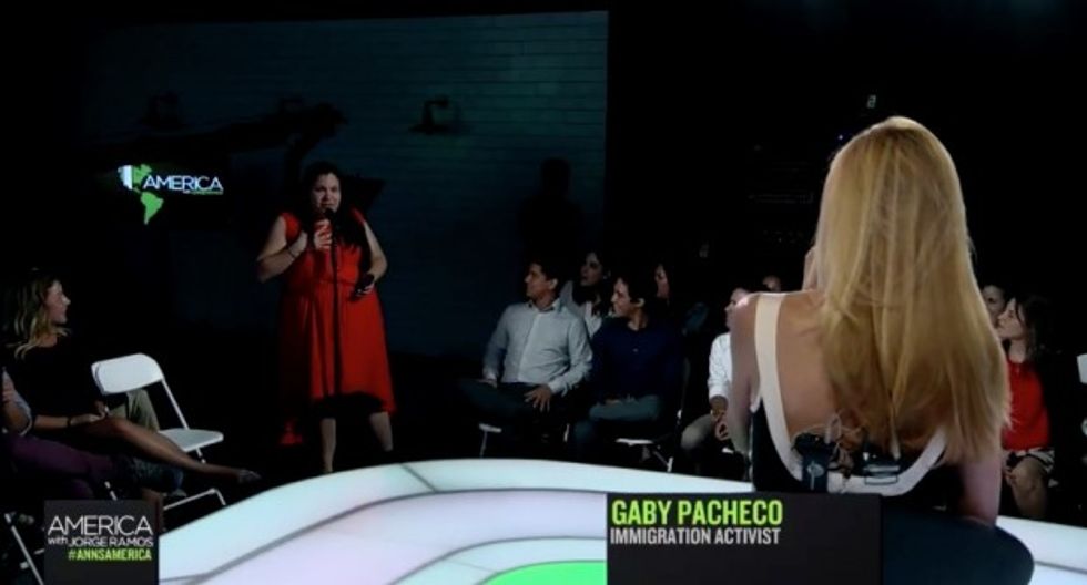 Gaby Pacheco, who came to the U.S. illegally, was denied the hug by Coulter during a question and answer session Tuesday.