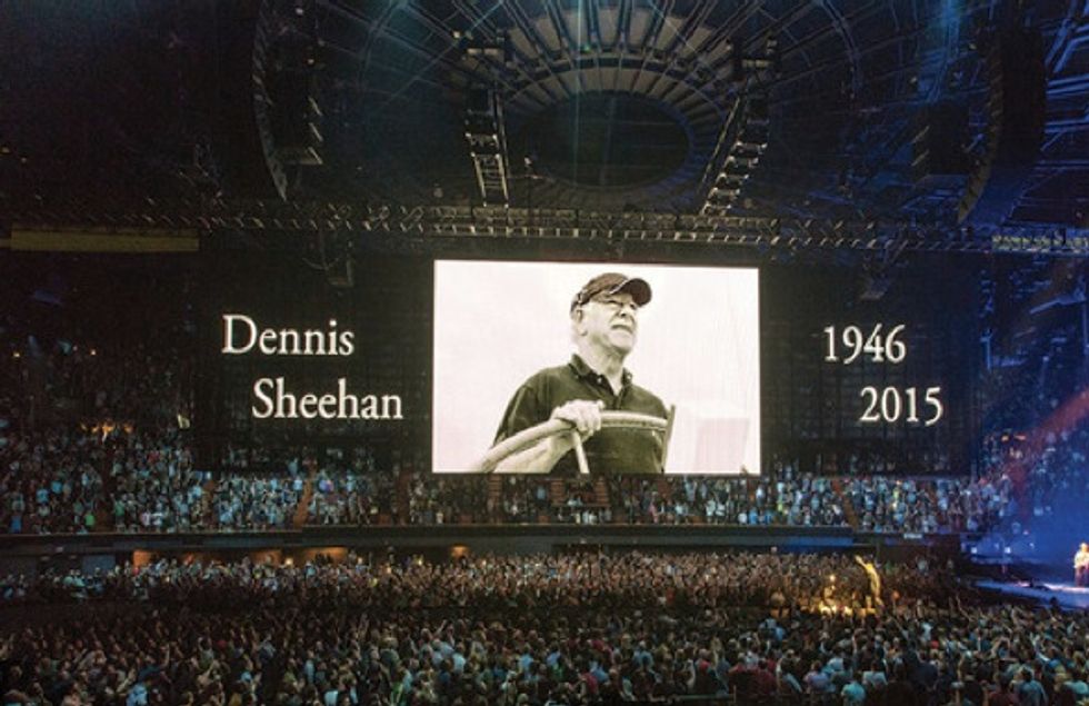 At the end of U2's show Wednesday night, Bono told the Forum crowd that "we dedicate this song, in fact we dedicate the night, in fact we dedicate our whole tour to the very living memory of Dennis Sheehan."