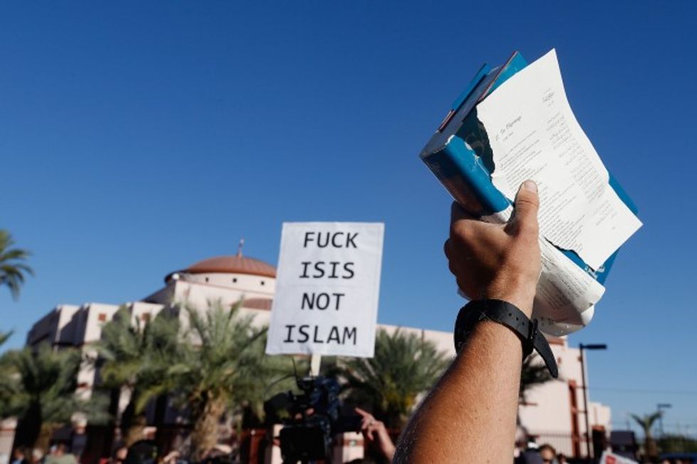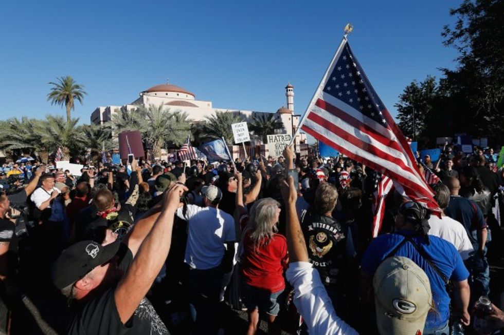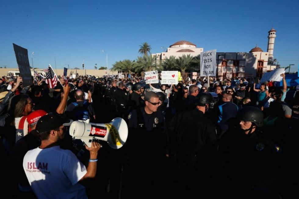 Protesters and counter-protesters rally outside the Islamic Community Center on May 29, 2015 in Phoenix, Arizona. (Photo by Christian Petersen/Getty Images)