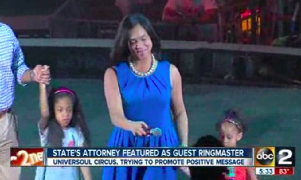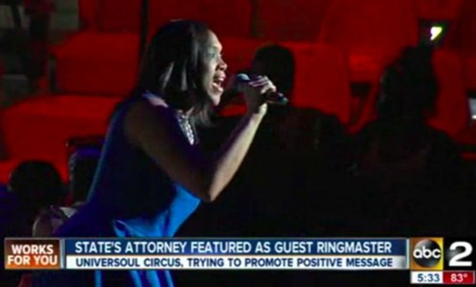 A WMAR-TV reporter — noting Marilyn Mosby got the loudest of the cheers when she was introduced under the big top — acknowledged that "of course not everyone thinks that it is appropriate that she be making these types of appearances."
