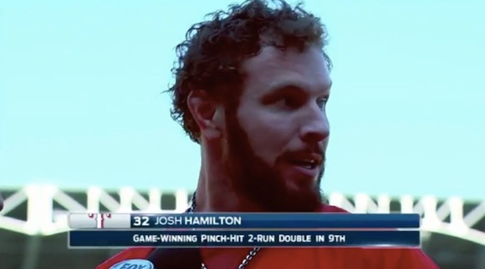 Texas Rangers' outfielder Josh Hamilton slapped a pinch-hit double in the 9th inning to drive in two runs and give his team a 4-3 win over the Boston Red Sox on Sunday. And while that made for a perfect ending for him, it eventually led to a something quite the opposite for a reporter during the postgame interview.