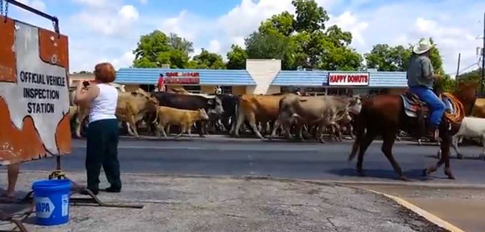 Aaron Privett was one of a dozen or so families who showed up to watch the cattle drive, telling the news station it was "a once-in-a-lifetime experience."