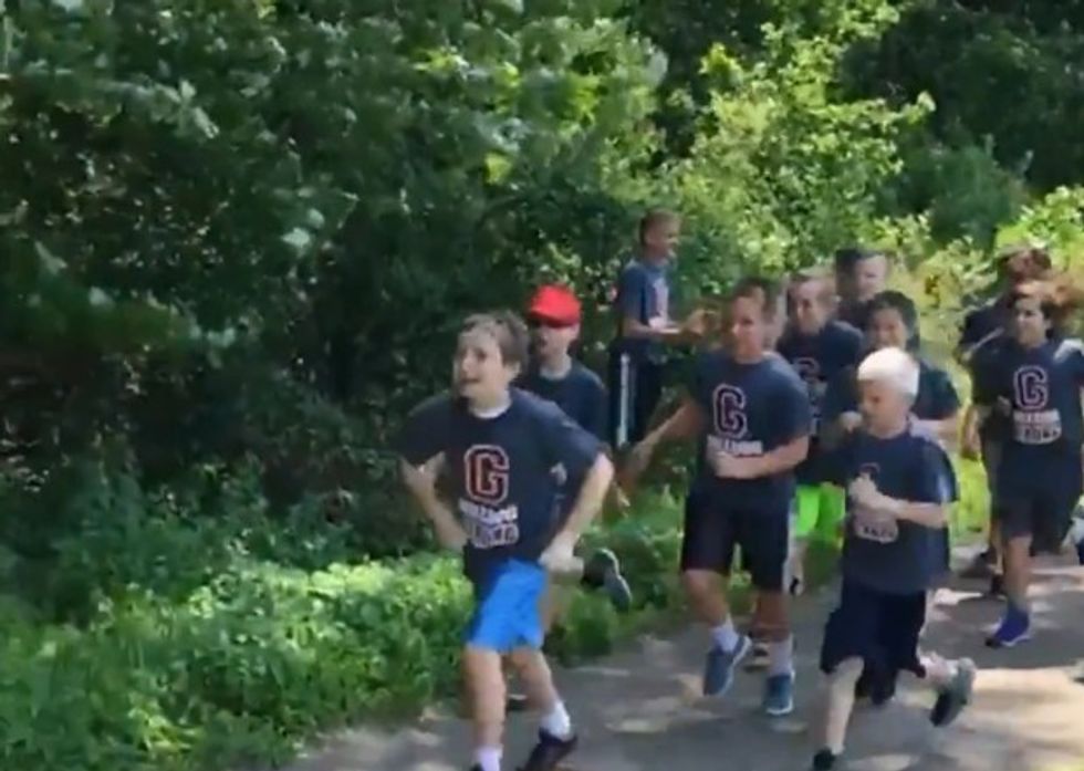 As a group of girls chanted "Preston! Preston!" at the finish line, Preston lead a group of boys around the corner of a field in what the Grand Rapids Press called the marathon race.