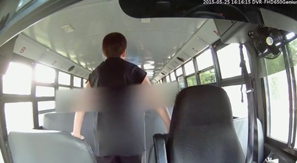 The driver, who seemed to have had enough, then pulled over and tossed the boy's bag out the door, giving the student a little push to exit as well. This last bit is what was captured on a cellphone by another student at the back of the bus and began making waves when it was released this week.