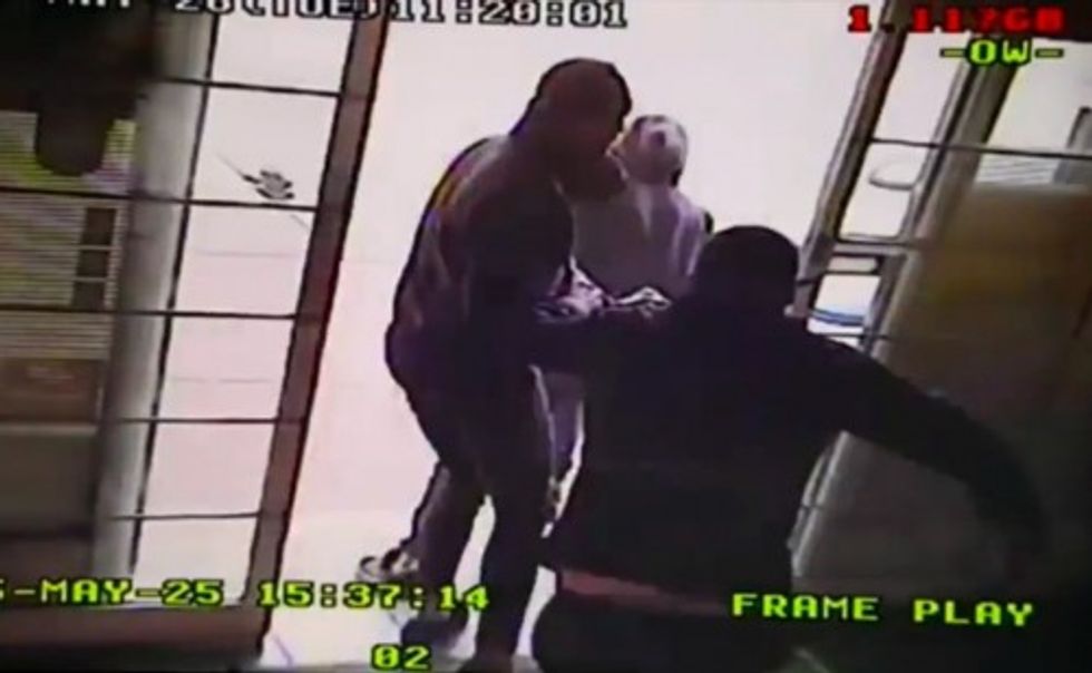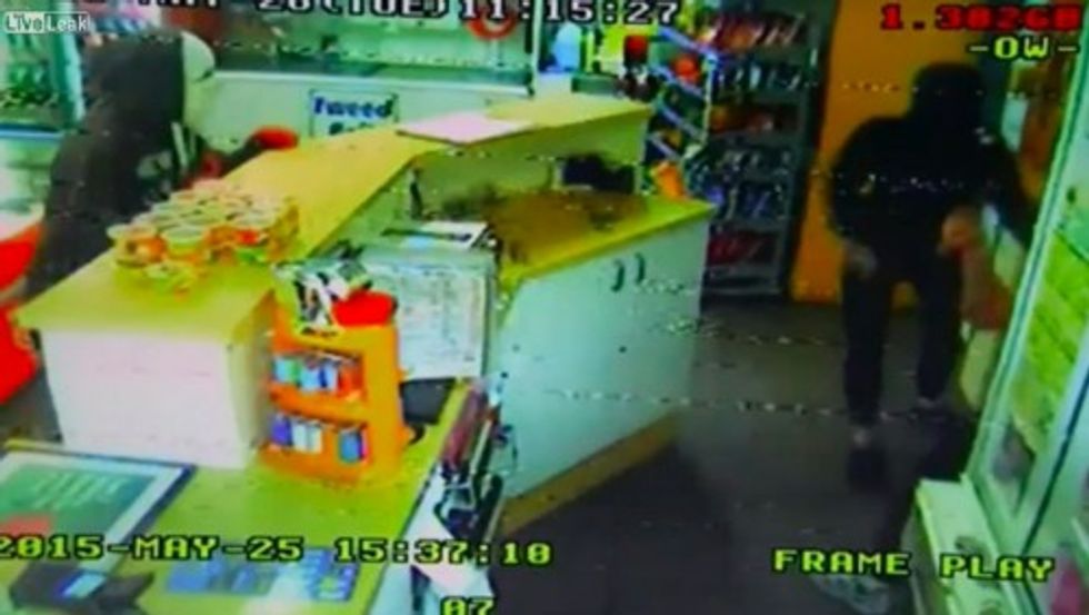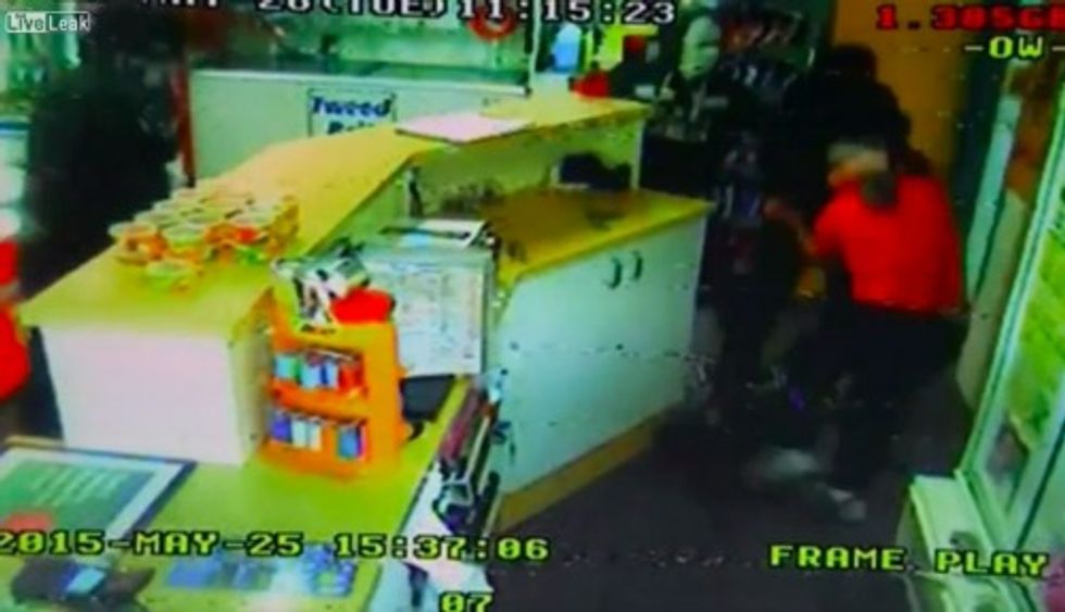 In fact, the lead guy gave up the fight within seconds and followed his fleeing comrades out the front door.