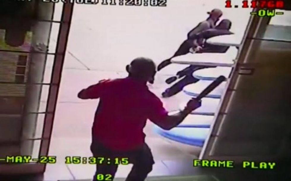 When the first would-be robber got behind the counter, a surveillance camera showed Butler grabbing a bat and wrestling him.