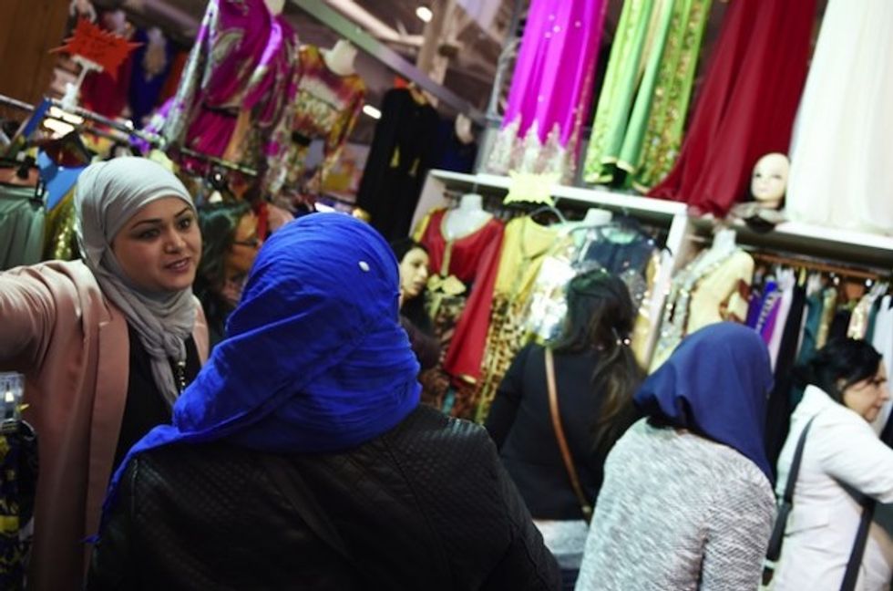 Women look at clothes, on April 6, 2015 during the 32nd Annual Meeting of France's Muslims, at Le Bourget Exhibition center, north of Paris. (Photo: Loic Venance/AFP/Getty Images)