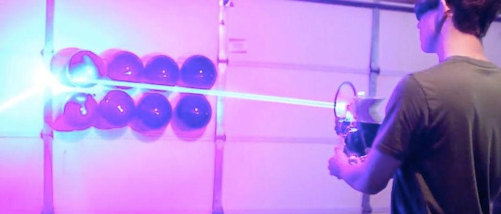 On Sunday, Anthony uploaded a new video showing off the power of a 40 watt "laser shotgun" he built at home. Something he said he was even afraid to build but did because he could and it wasn't illegal.