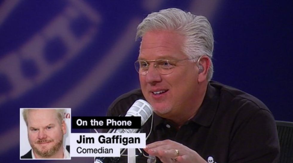 Glenn Beck speaks with comedian Jim Gaffigan on June 9, 2015. (Photo: TheBlaze TV)