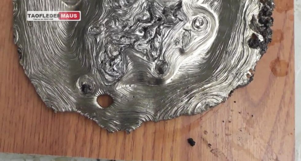 "What happens when you pour Coca Cola into a pan of molten lead? Obviously, ART occurs!" the man wrote on YouTube.