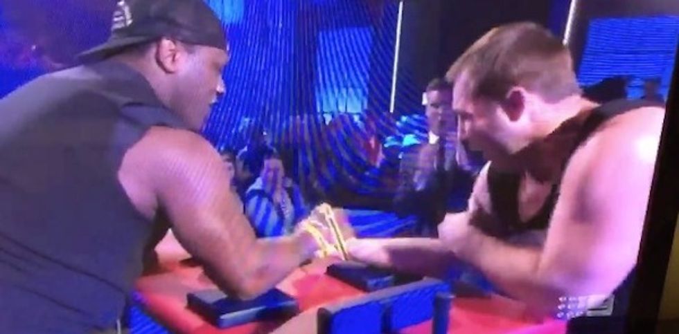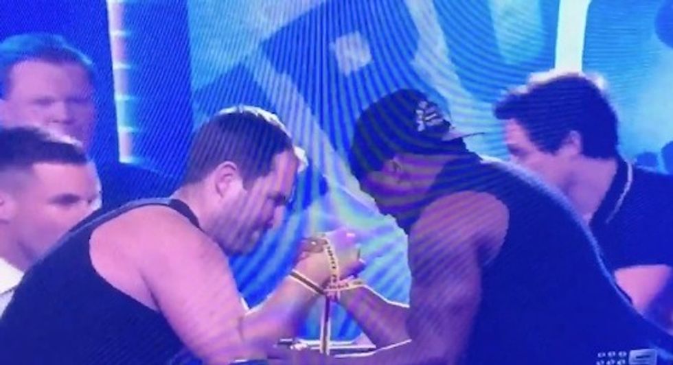 An Australian rugby show hosted an "Iron Arm Wrestling" challenge and its finalists took their elbows to the table Thursday. Unfortunately for one, the match ended with more than just a bit of wounded pride.