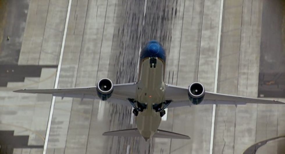 A video posted online Thursday by Boeing shows a 787-9 Dreamliner display the aircraft's technical capabilities by ascending into the air with an incredibly steep take off.