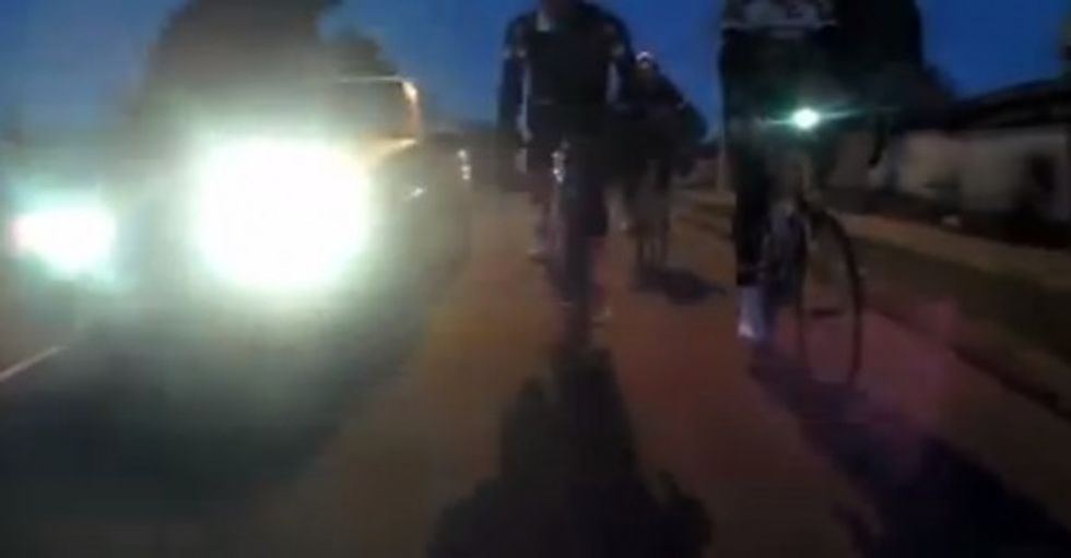 A group of cyclists were out for a morning ride over the weekend when one car appeared to speed up as it went past them, sideswiping several riders before driving away. One of these cyclists had a bike-mounted camera that captured the ordeal.