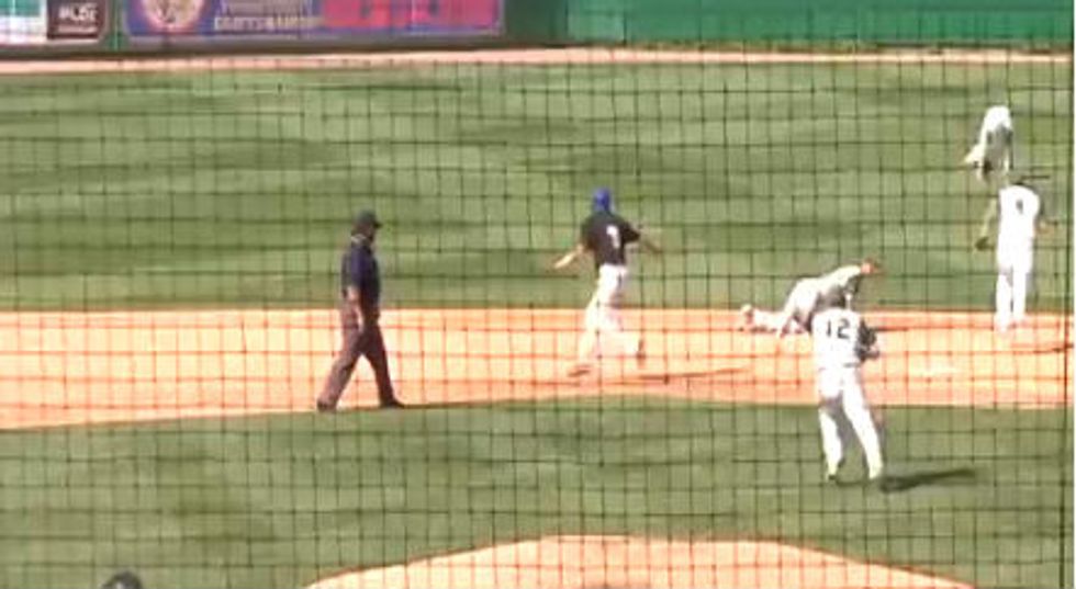 The Rockford runner went going back and forth, trying to decide whether or not to run when the St. Bede pitcher, who had the baseball the entire time, ran up and tagged him out. Rockford still won the game 2-1, but if wins were based on cleverness, there'd be little doubt as to who would have won.