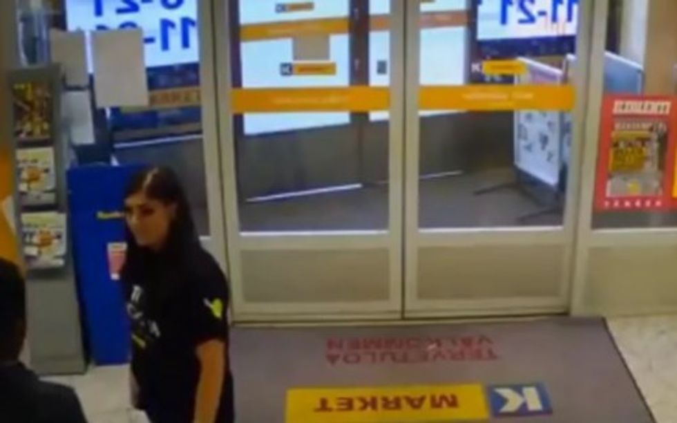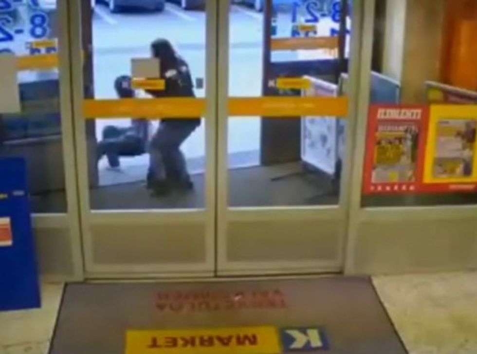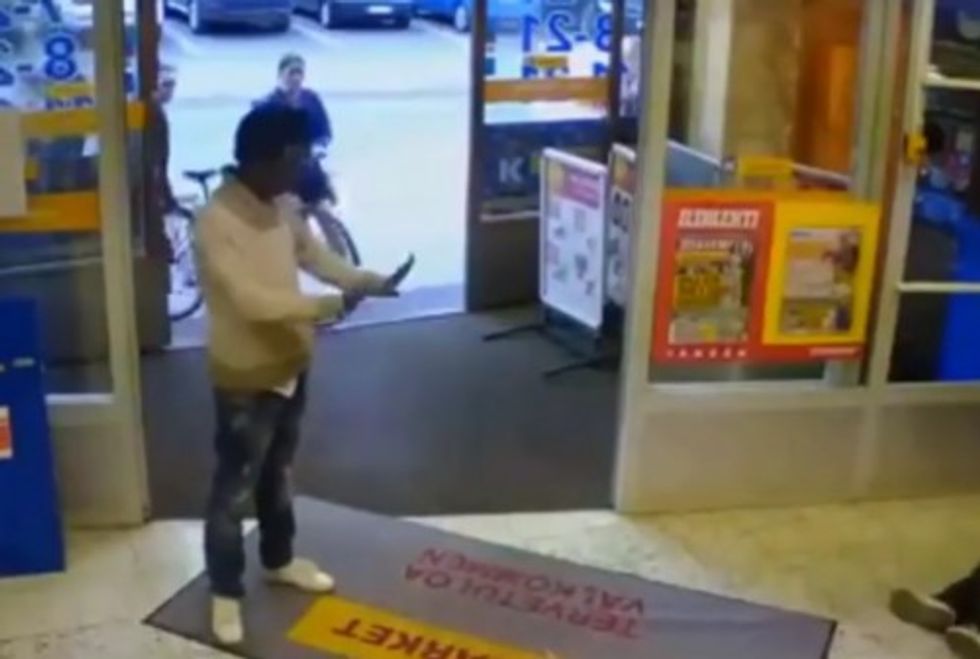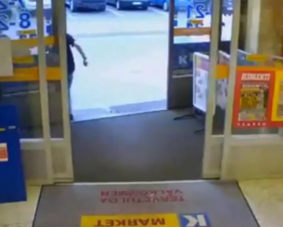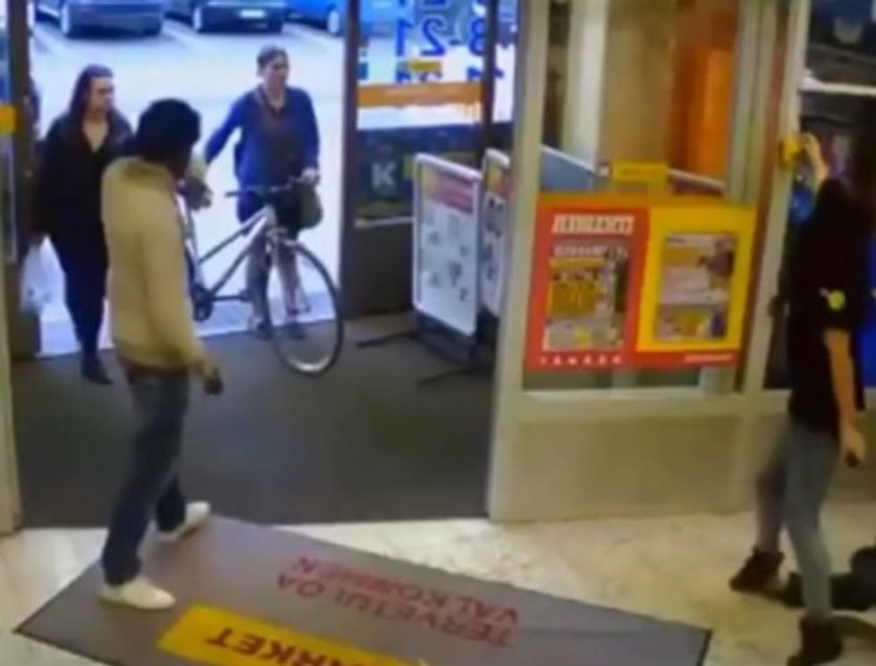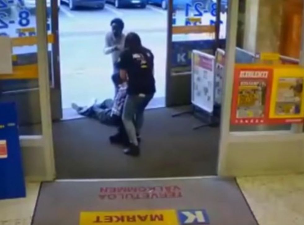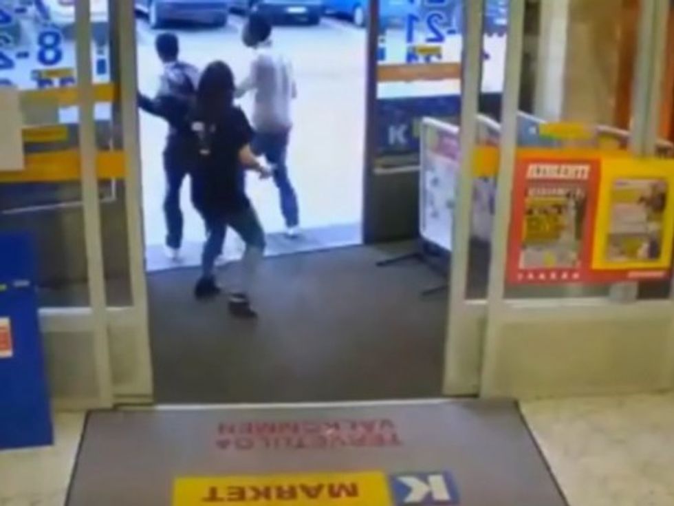 As they attempted to leave the Helsinki K-Market, apparently without their beer, the woman still wouldn't let go.
