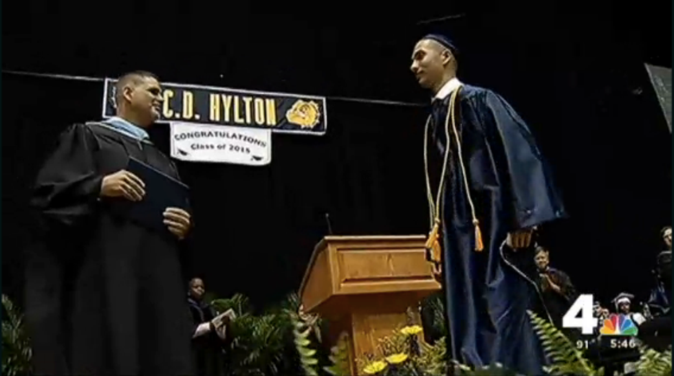 The 18-year-old surprised his Hylton High School classmates in Va., on June 6 when he stepped out of his wheelchair and steadily walked across the stage in his cap and gown to receive his diploma.