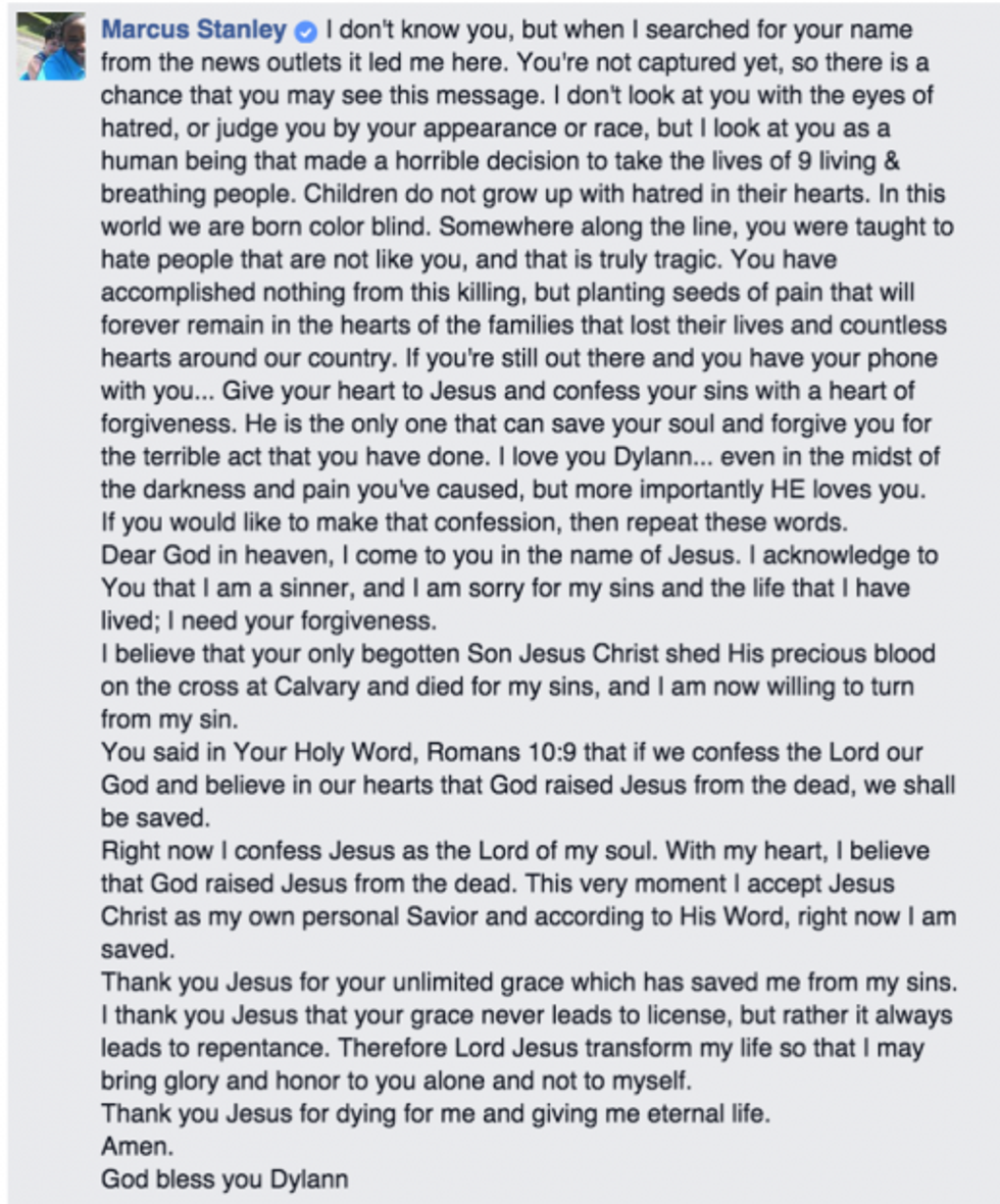 But one man, Marcus Stanley, had an incredibly profound message for Roof. The message was one of love, not hate.