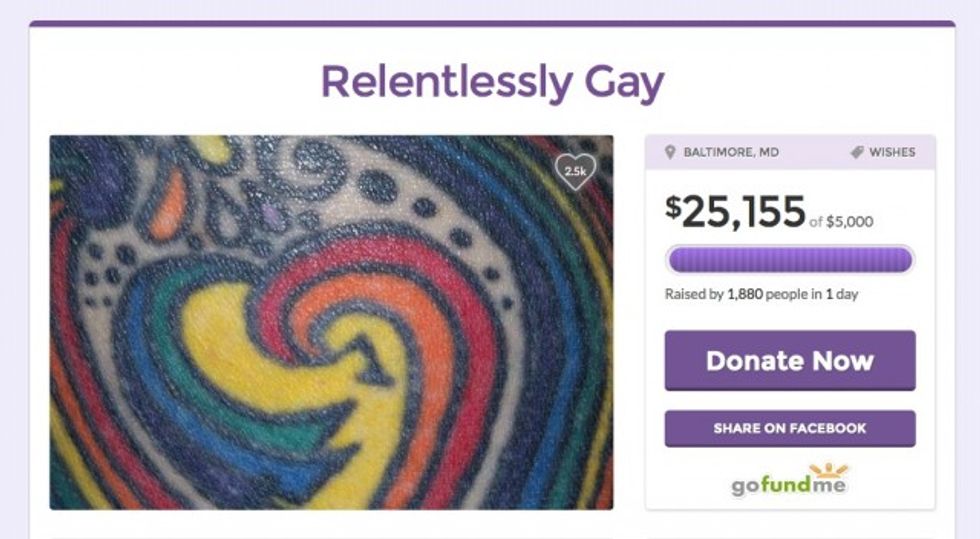 A Baltimore woman who said she received an anti-gay letter from a neighbor over the appearance of her yard has raised over $25,000 in one day so she can further her efforts in creating "relentlessly gay" outdoor decor.