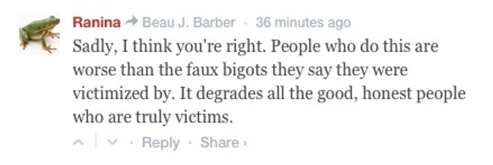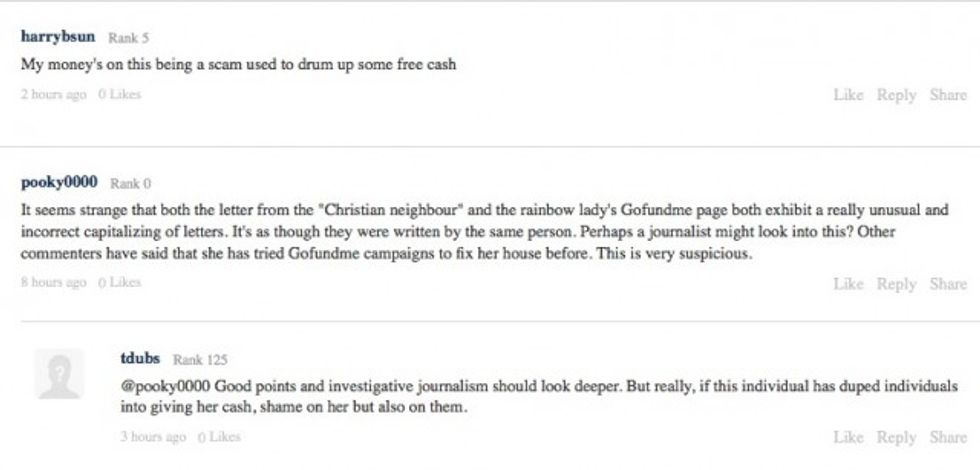 But some are questioning the woman's story, saying she may have composed the letter in question to elicit sympathy from pro-LGBT readers and grab easy money.