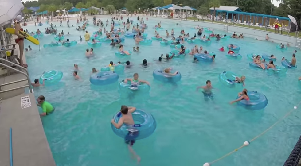 A few seconds into the video, posted to YouTube by LifeGuard Rescue, a young child appears to fall out of his inner tube and flail in the water. The lifeguard immediately jumped into the pool and swam towards the child -- eventually pulling him to the side of the pool.