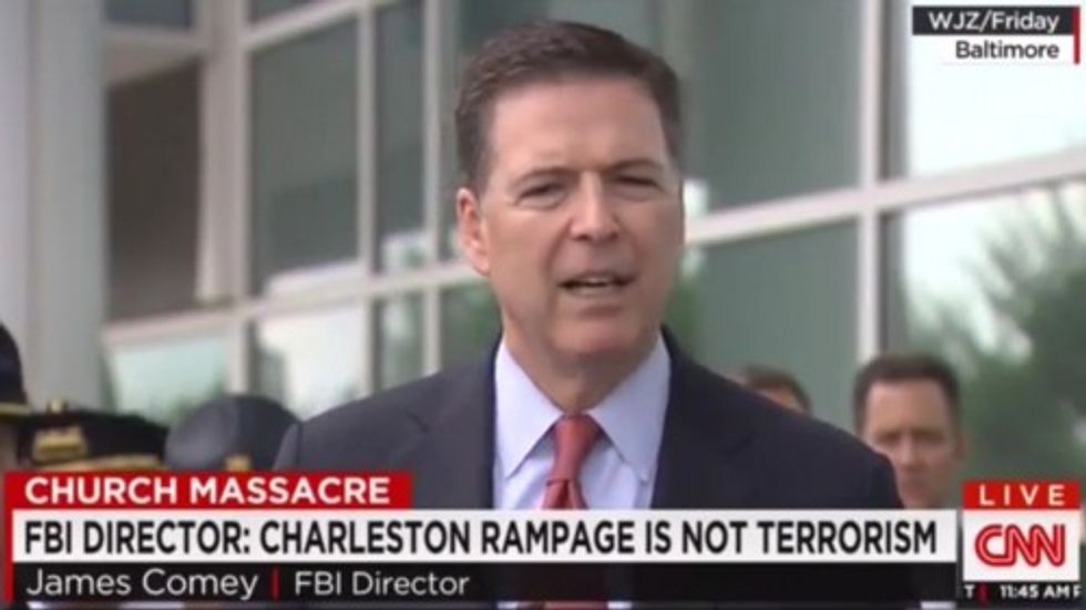 “Terrorism is act of violence done ... in order to try to influence a public body or the citizenry, so it’s more of a political act," James Comey said during a Baltimore press conference Friday regarding the tragedy in Charleston. "And again based on what I know so far, I don’t see it as a political act. Doesn't make it any less horrific ... but terrorism has a definition under federal law."
