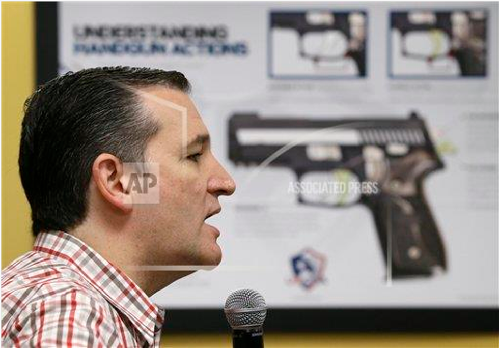 "Presidential candidate Ted Cruz was shown in a series of 14 photos taken by an Associated Press photographer at a ‘Celebrate the 2nd Amendment’ event Saturday afternoon, held at a shooting range in Johnston, Iowa," AP spokesman Paul Colford said in a statement late Sunday. "Five of the photos published by AP included images of guns seen on a wall in the background so that it appeared a pistol was pointed at Sen. Cruz’s head. The images were not intended to portray Sen. Cruz in a negative light."