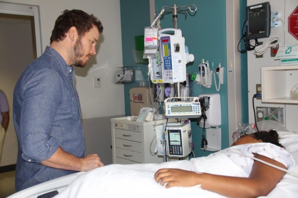 Actor Chris Pratt, the star of the hit movie “Jurassic World,” took time out of his busy schedule to visit sick children and other patients at Our Lade of the Lake Children’s Hospital in Baton Rouge, Louisiana, over the weekend.