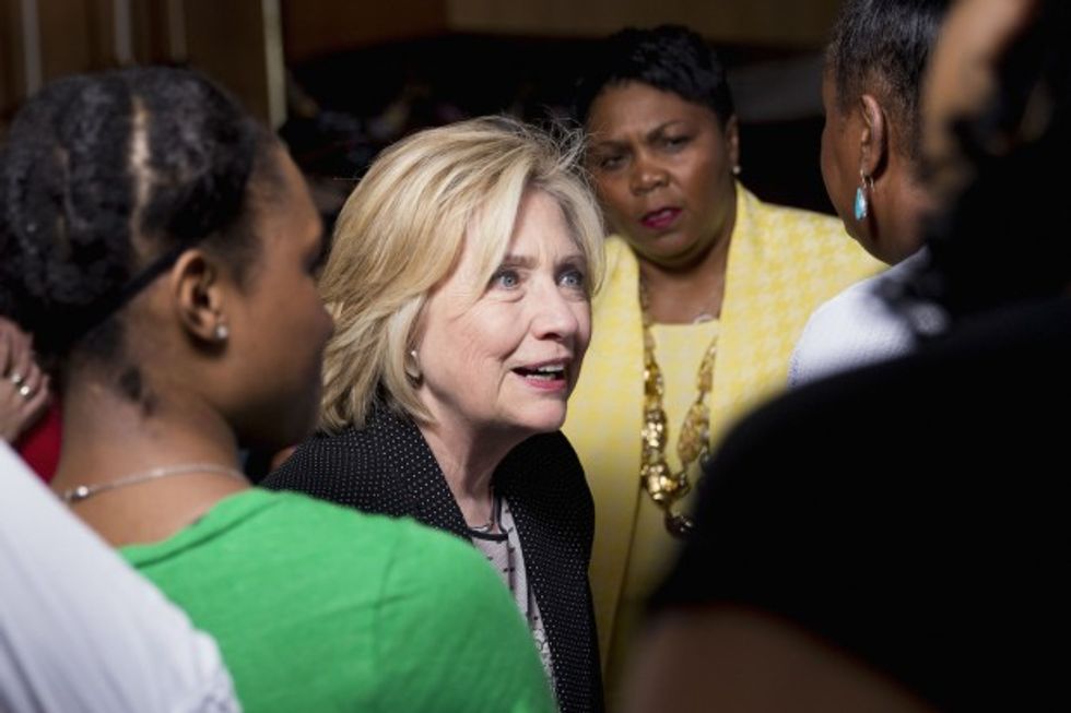 Democratic presidential candidate and former U.S. Secretary of State Hillary Clinton greets supporters on June 23, 2015 at Christ the King United Church of Christ in Florissant, Missouri. (Photo by Whitney Curtis/Getty Images)