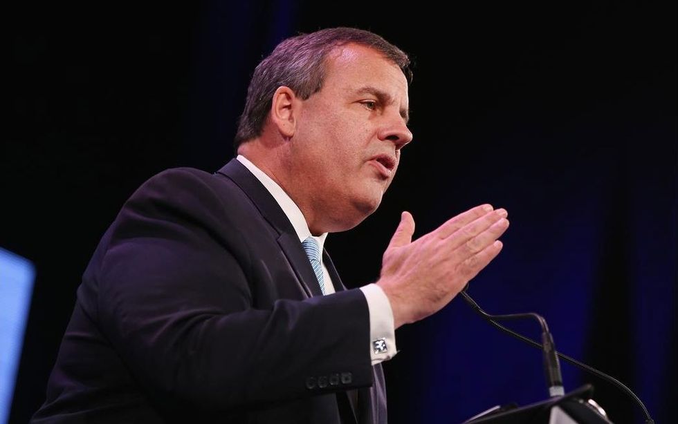 New Jersey Gov. Chris Christie (R) speaks to guests at the Iowa Freedom Summit, Jan. 24, 2015 in Des Moines, Iowa. (Scott Olson/Getty Images)