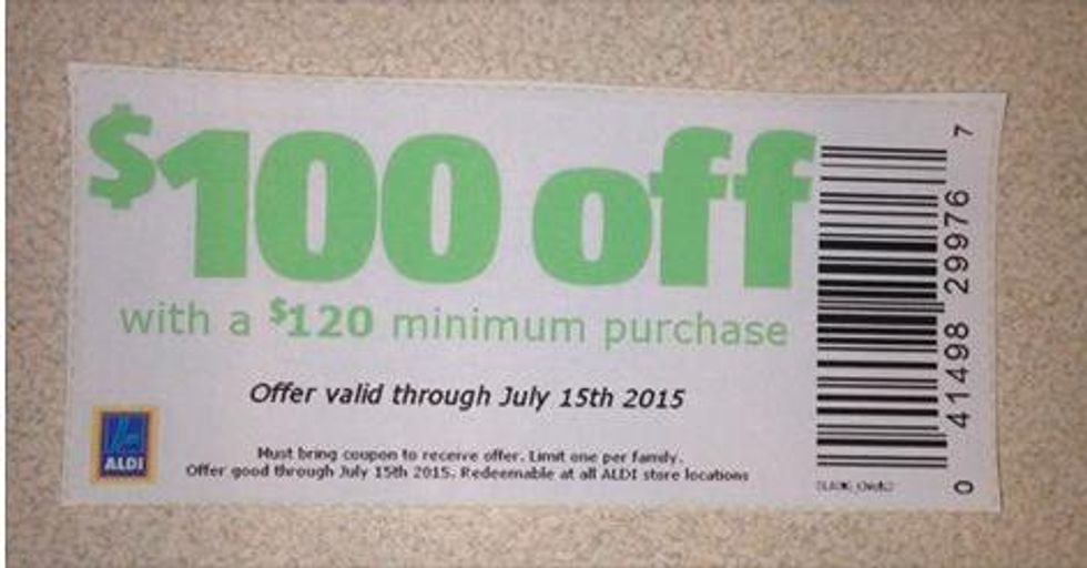 A $100 Aldi grocery store "coupon" could end up costing you a lot more.