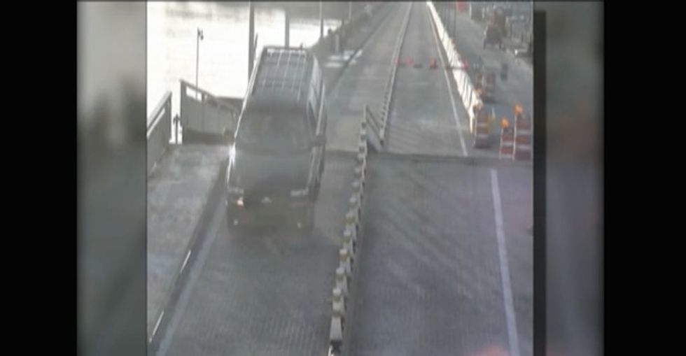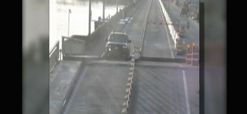 Police believe the motorist, who managed to drive his SUV across a draw bridge as it was opening, was distracted and not trying to be a daredevil (although that may be worse).