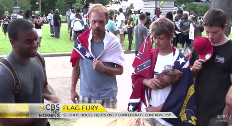 “The blood in my teeth and the blood on my hands is no comparison to the southern blood that runs through my veins,” the man told CBS, adding that he doesn't think the flag is racist. “But I’ll tell you one thing, I ain’t sitting down. This will just make me walk taller.”