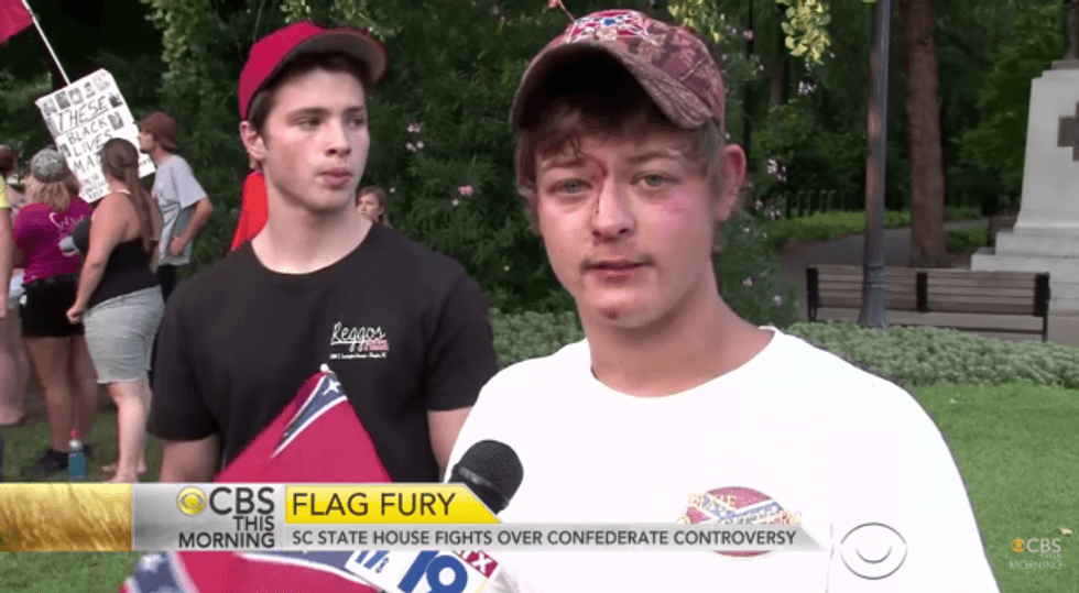 Dueling protests in Columbia led to reports of violent clashes, like the one that seemingly left the Confederate flag supporter’s face tinged with blood. It wasn't clear if a specific incident sparked the brawl that left him with minor injuries, or if it was just the result of the tension between the opposing demonstrators.