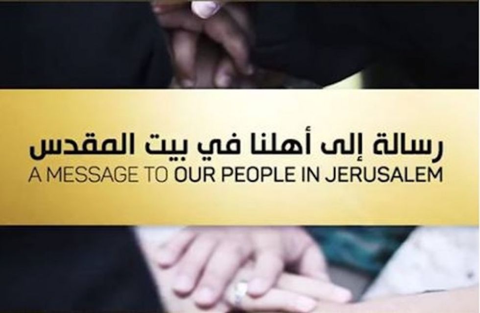 In the video, titled “A Message to Our People in Jerusalem," the Islamic State derides Hamas for “raising their children to respect this [Palestinian] flag,” Britain's Independent reported.