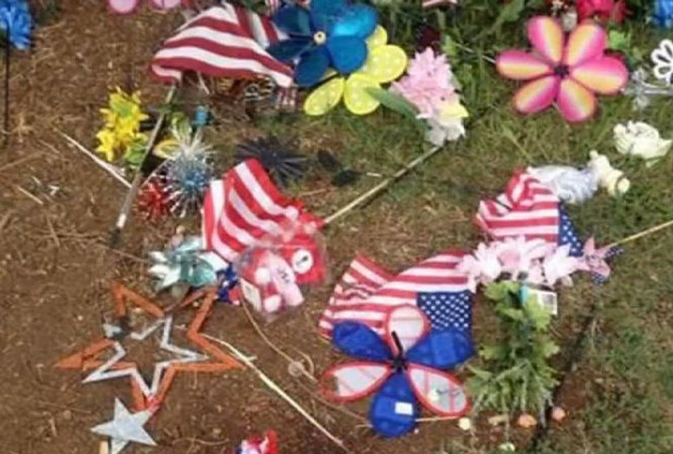 Photos show the removed flags lying on the ground nearby, discarded as if they were trash. When family and friends of those who are buried at the cemetery noticed what someone had done with them, they were livid.