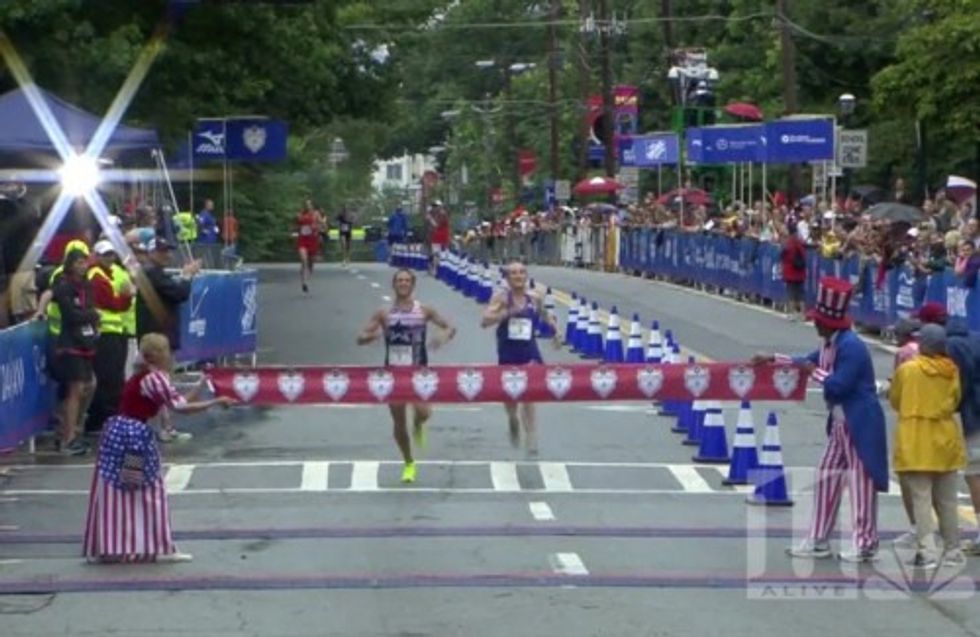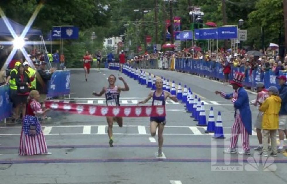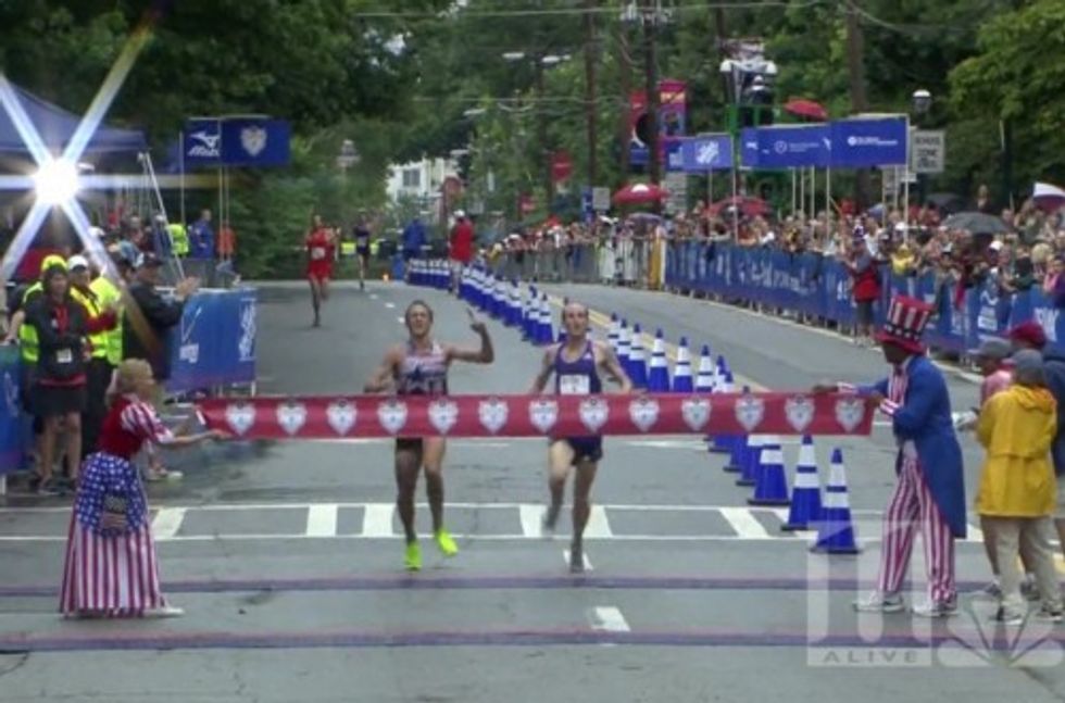 American Ben Payne figured he'd finally left behind British competitor Scott Overall in Saturday's Peachtree Road Race in Atlanta.