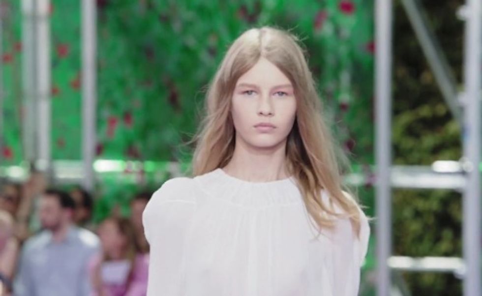 Sofia Mechetner was the first model on the runway at Dior’s Fashion Week show in Paris after an unlikely meeting with the fashion house’s creative director. (Image source: YouTube/Christian Dior)\n