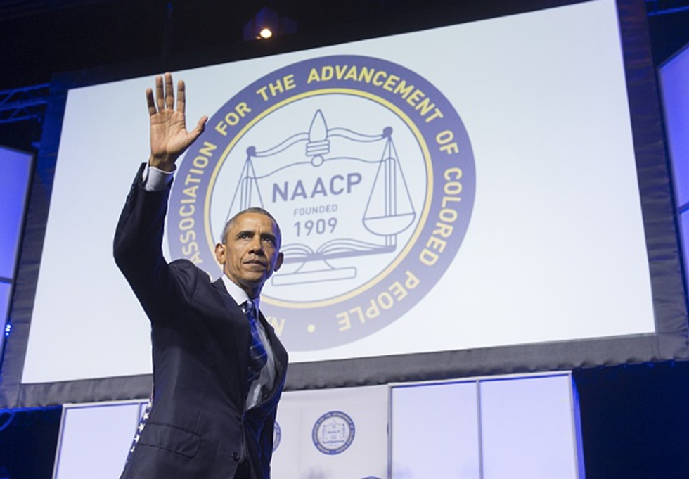 President Barack Obama waves after speaking during the NAACP's 106th National Convention in Philadelphia, Pennsylvania, July 14, 2015. AFP PHOTO / SAUL LOEB (Photo credit should read SAUL LOEB/AFP/Getty Images)