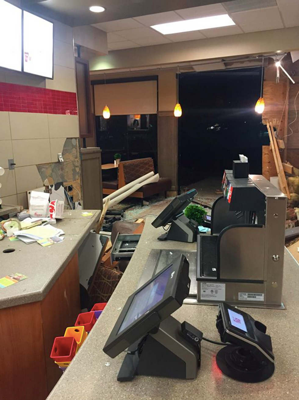 The store posted photos of the damage and regularly updated customers in the area on the status of the restaurant. As of Monday afternoon, only the drive-thru remained open while the interior could be restored by as early as Thursday.