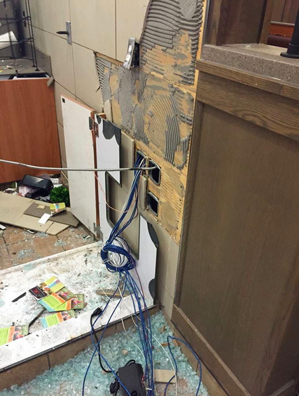 According to KHOU, the burglars shattered glass and pulled wires and tiles from the walls of the restaurant.