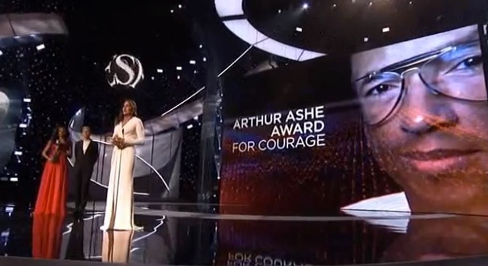 LOS ANGELES (TheBlaze/AP) -- Caitlyn Jenner accepted the Arthur Ashe Courage Award at the ESPYs on Wednesday night, saying her mission going forward is to "promote a very simple idea: accepting people for who they are."