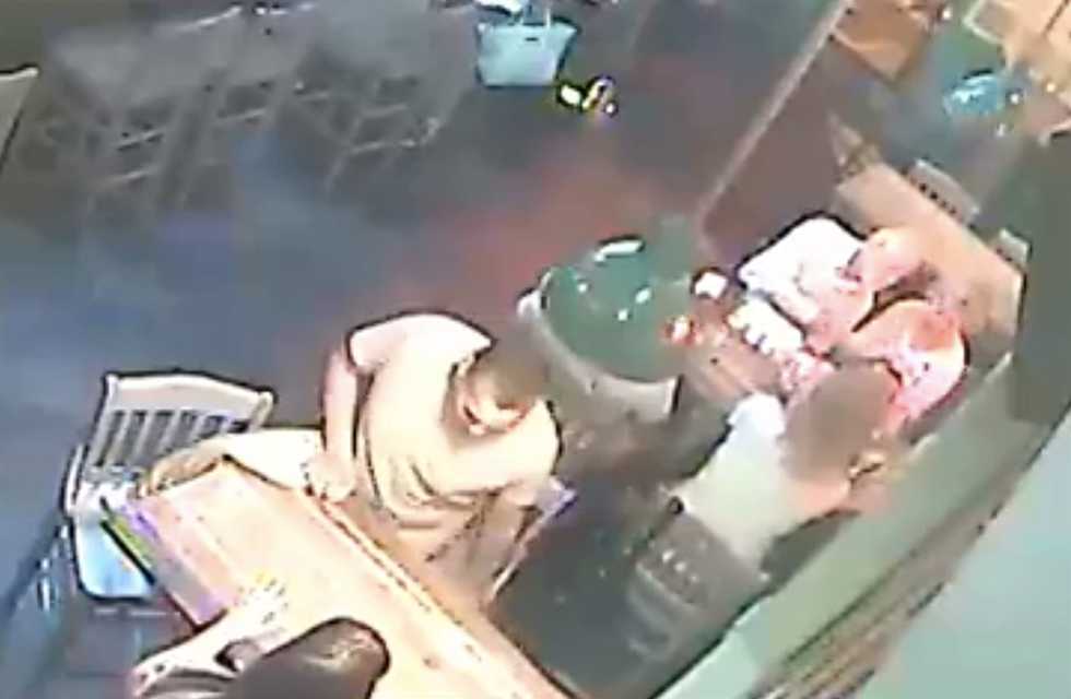 Then the man seemingly fumbled with his jacket, using the article of clothing to conceal how he was rummaging through the woman's purse. The theft was both surreptitious and, once you know what he is doing, appallingly brazen.